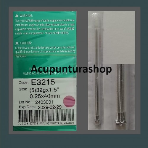 Agujas de Acupuntura en baño de acero CAJA CON 100 PIEZAS (una aguja por tubo). 32G x 1.5cum 0.25mm x 40mm
