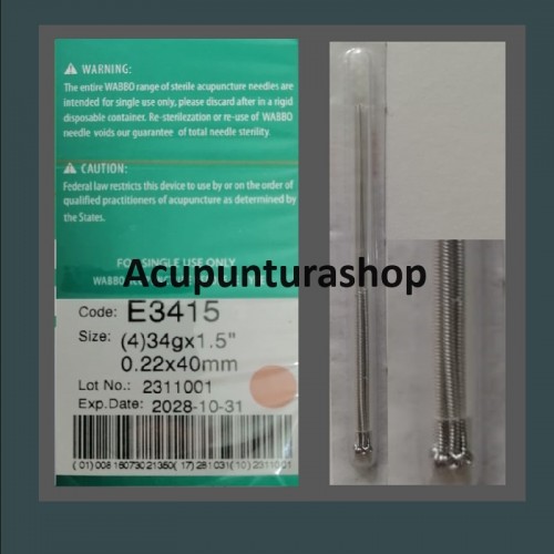 Agujas de Acupuntura en baño de acero CAJA CON 100 PIEZAS (una aguja por tubo). 34G x 1.5cum 0.22mm x 40mm