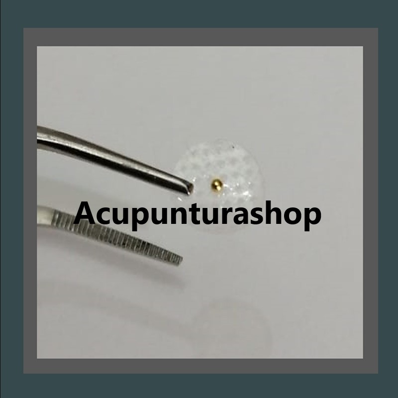 1000 balines magnetizados DORADOS de 1mm con parche para la estimulación de puntos de auriculoterapia.