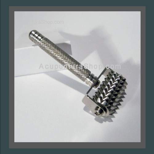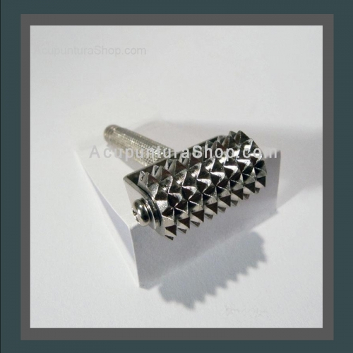 Rodillo Energetizador metálico de mango cromado y cabeza rodante.