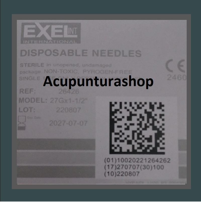 Aguja de 27G x 38mm (27 G x 1 1/2") color GRIS. Útil para tratamientos corporales.