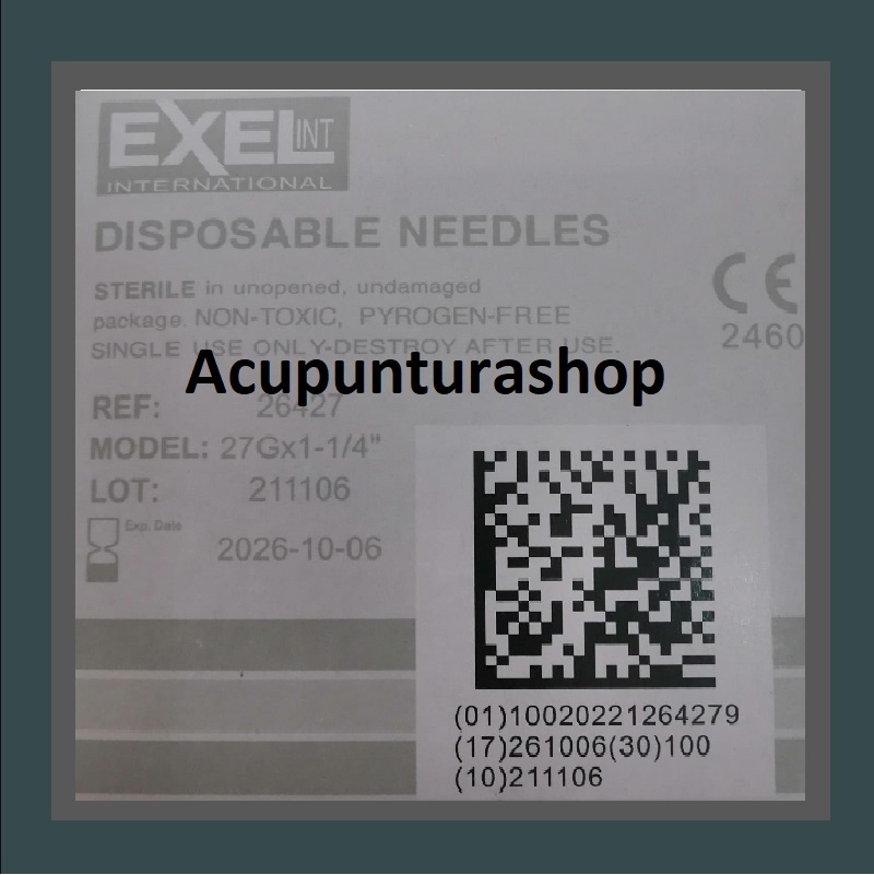 Aguja de 27G x 32mm (27 G x 1 1/4") color GRIS. Útil para tratamientos corporales.