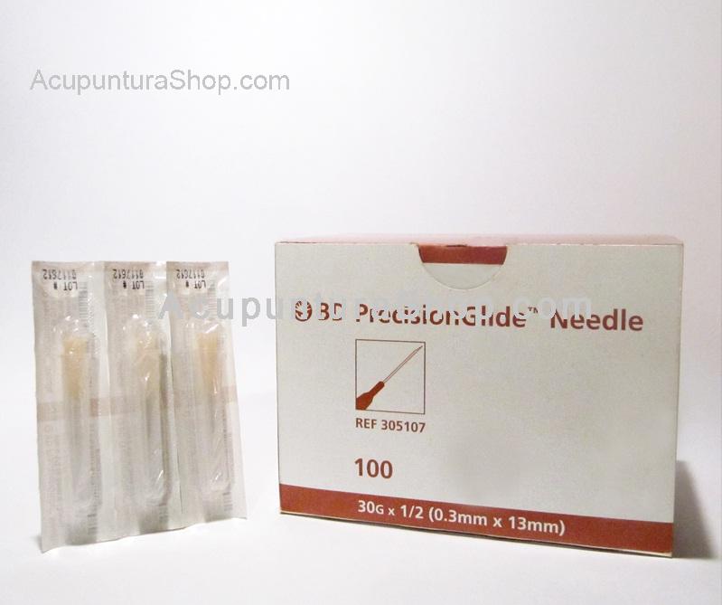 Caja con 100 agujas hipodérmicas estériles desechables para mesoterapia.