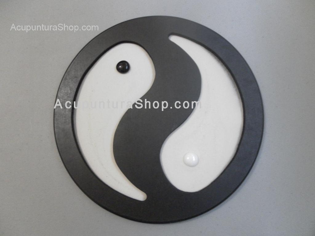 Arenero circular de madera ying yang para mesa de centro o escritorio