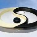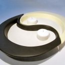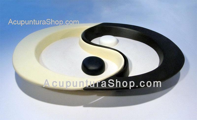 Jardin Zen de cerámica en forma de ying yan en tamaño grande, mide 41cm de largo x 30cm de ancho x 6cm de alto.