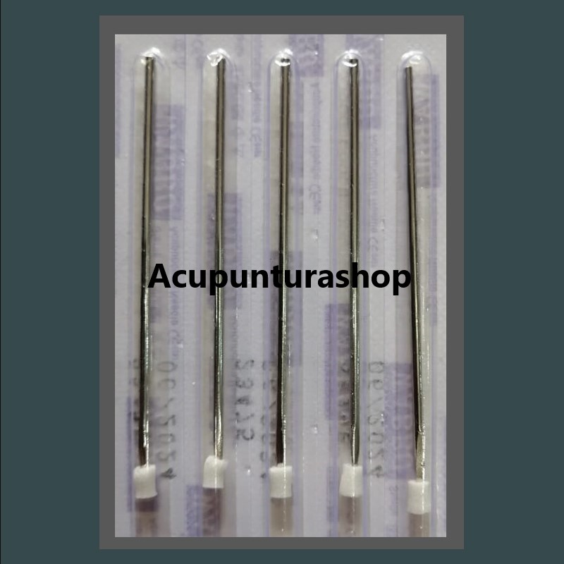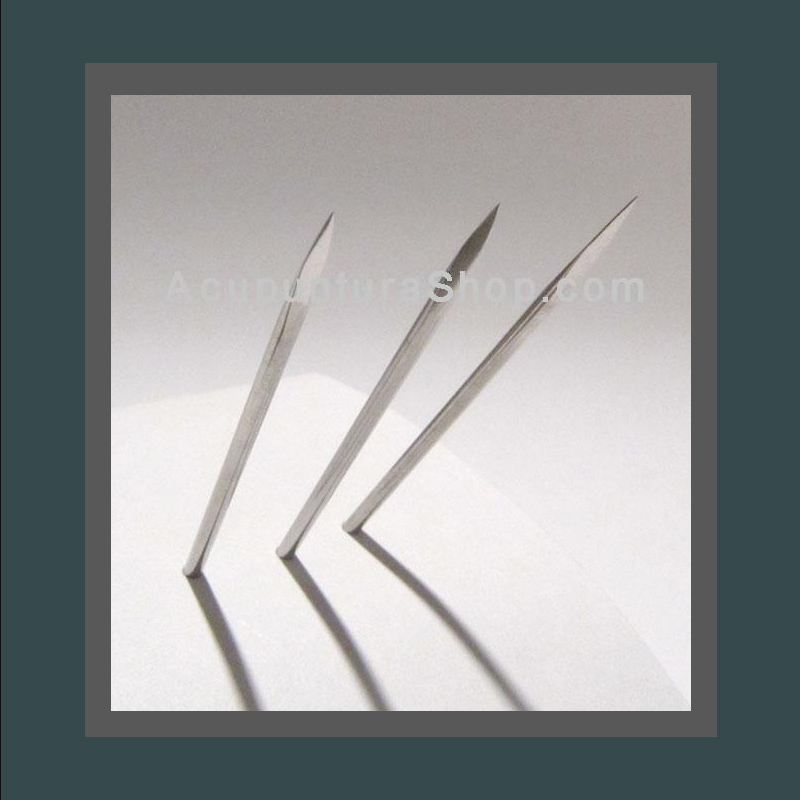 Aguja con punta prismática para punzar y sangrar puntos acupunturales. Ideal para eliminar excesos de energía. 100% acero inoxidable.