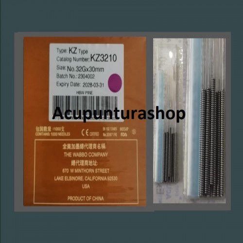 Agujas estériles para acupuntura tipo coreana, de la prestigiada marca HBW (PINE TEN) de excelente calidad con mango simple con espiral, sin lup y punta roma de Acero con extraordinario filo.