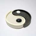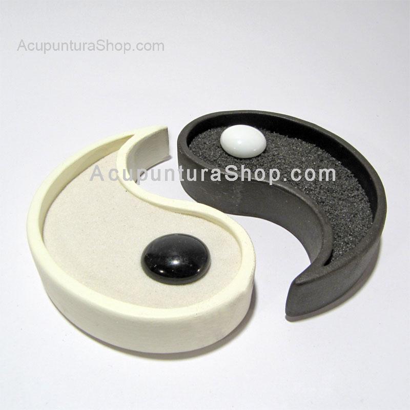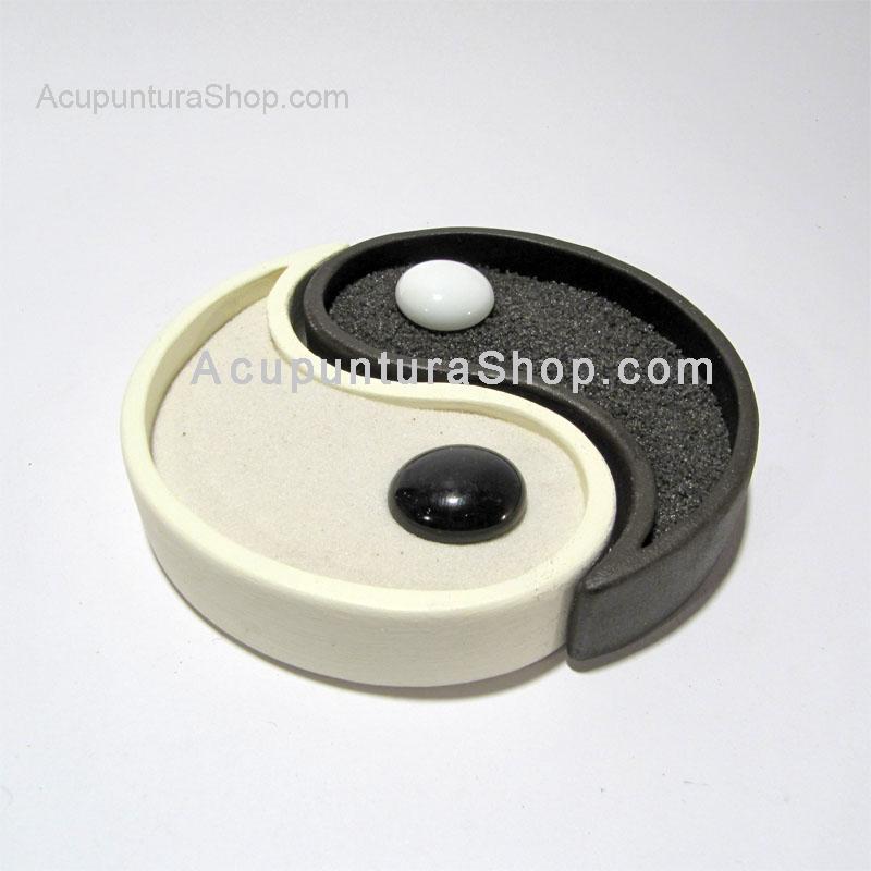 Jardín Zen con figura de Yin Yang en cerámica en color café chocolate y crema.
