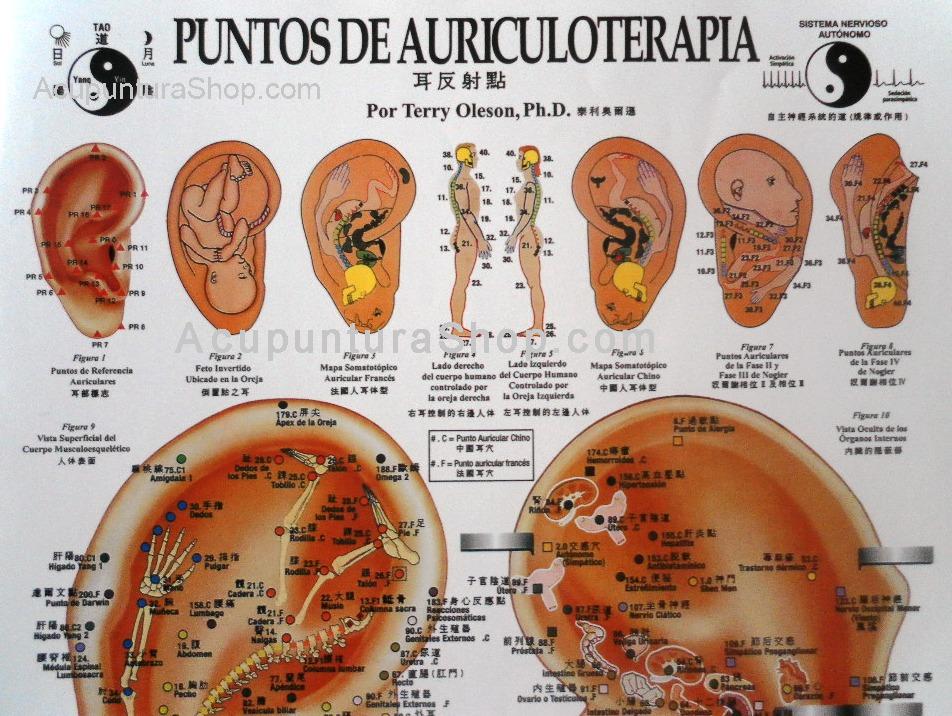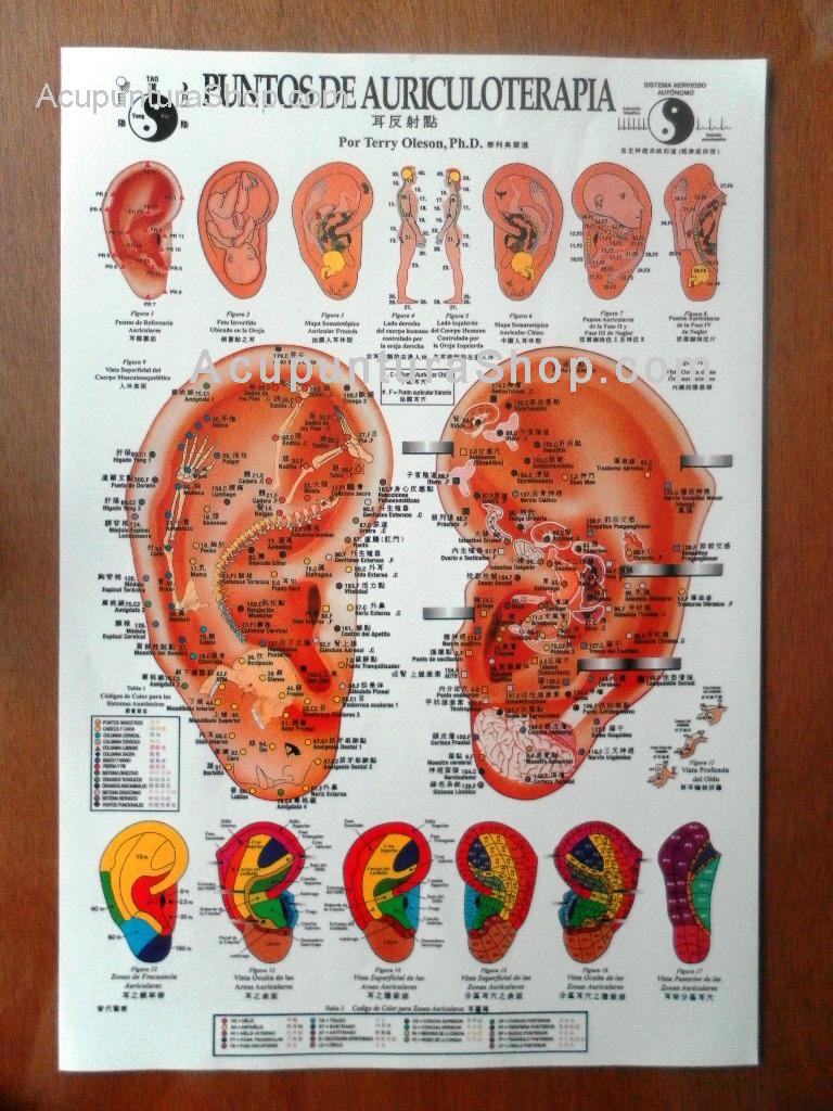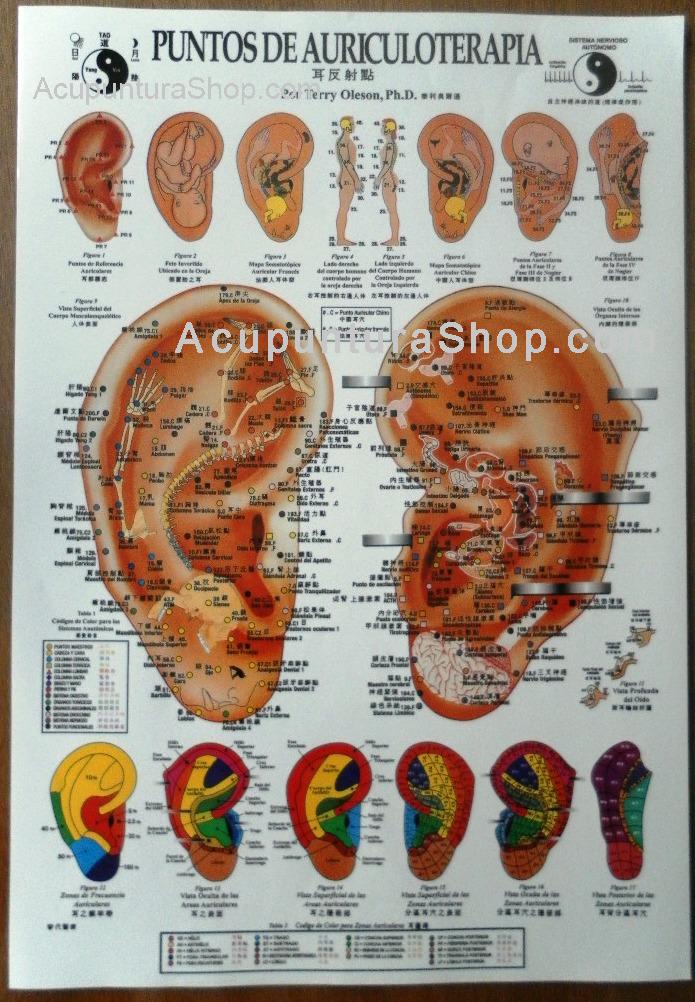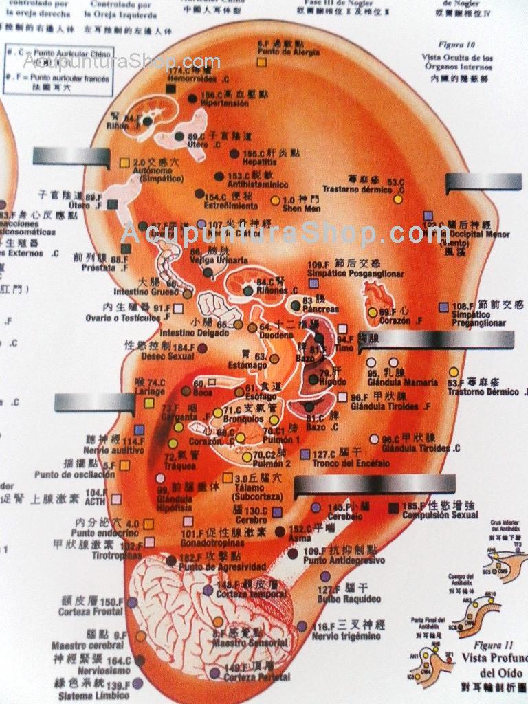 Esta lámina contiene todos los Puntos de Auriculoterapia en Español y Chino.