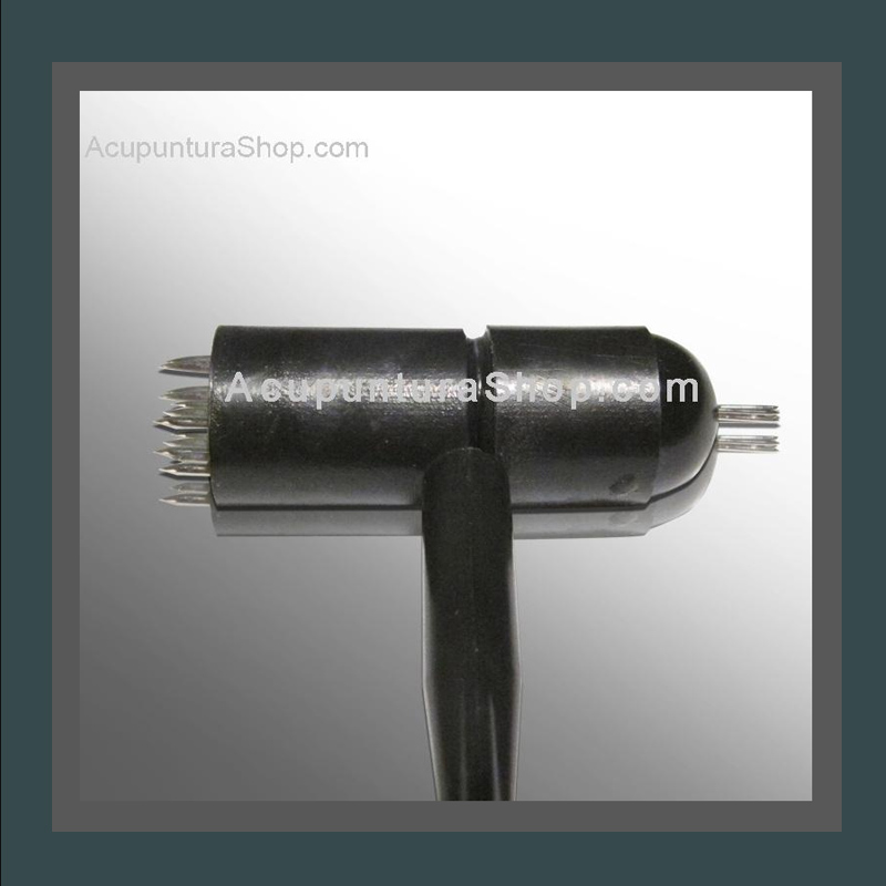 El martillo de 7 pequeñas agujas en un extremo y 5 pequeñas agujas juntas en el otro, tiene un mango flexible de plástico con gran movilidad para mejor control y destreza al estimular los puntos acupunturales.