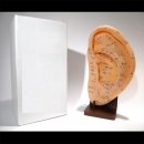 Modelo del Oido Humano, tamaño grande (22 centímetros) hecho del vinilo brillante suave. Montado en un soporte de madera. Los puntos son ilustatrados en caractéres chinos y números ingleses.