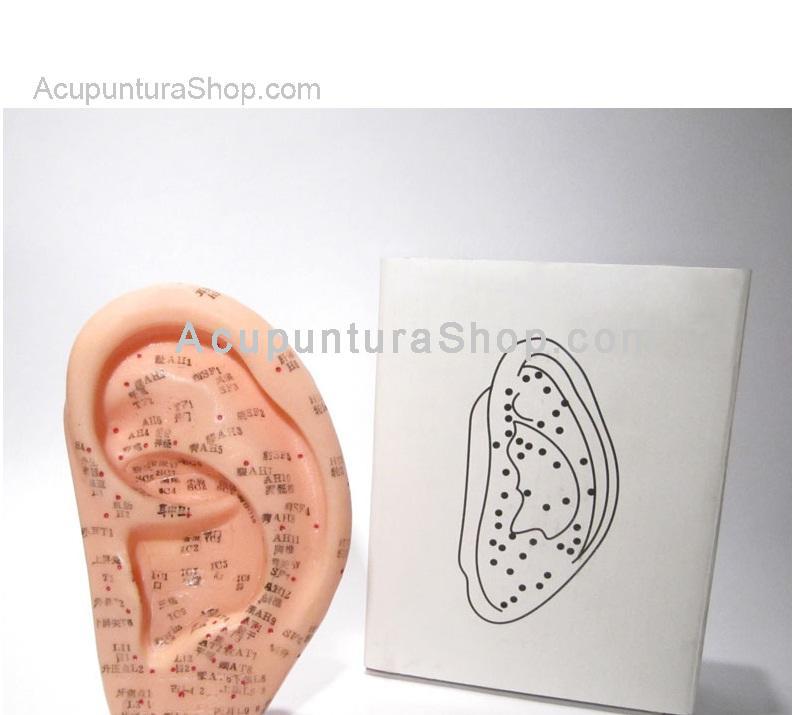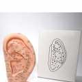 Modelo de Oído humano de plástico con puntos de auriculoterapia.