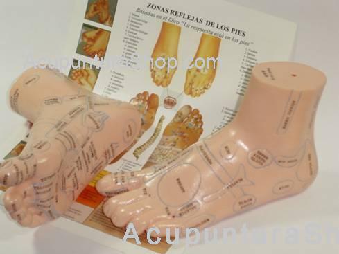 Modelo plástico del pie de 20cms, incluye pie derecho e izquierdo y muestran los puntos de reflexología podal o zonas reflejas del pie. Este modelo está hecho de vinilo brillante suave en color carne.