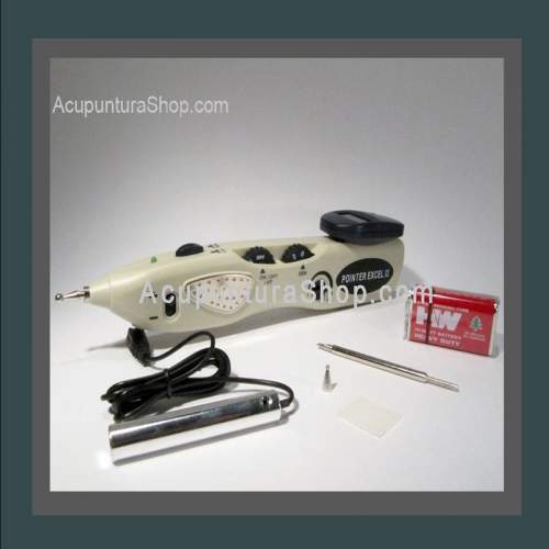Se trata de un aparato de última generación, con pantalla digital, localizador de gran precisión y estimulador de puntos de acupuntura y de puntos con microcorrientes y cambio de polaridad.