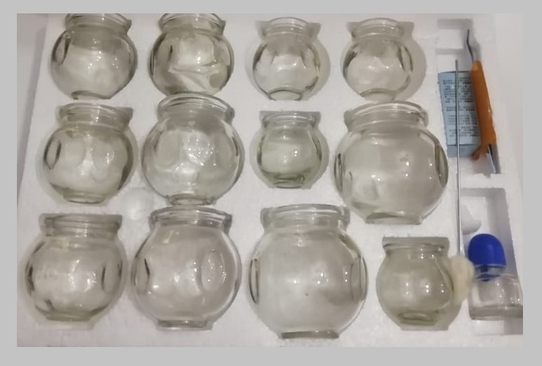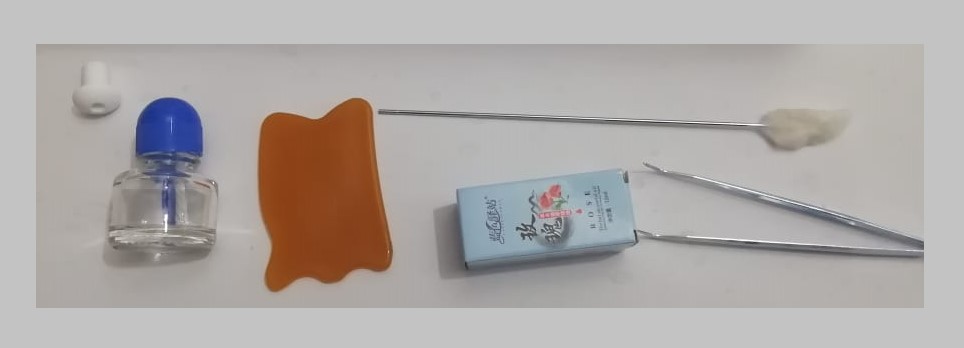 1 mechero, 1 tapon de mechero, 1 guasha , 1 pinzas, 1 esencia, 1 vara. 2 ventosas de hule