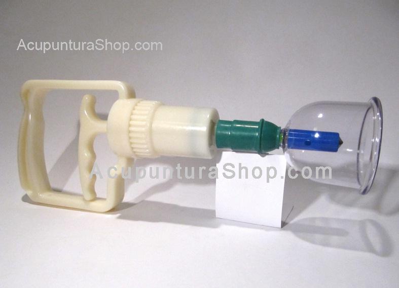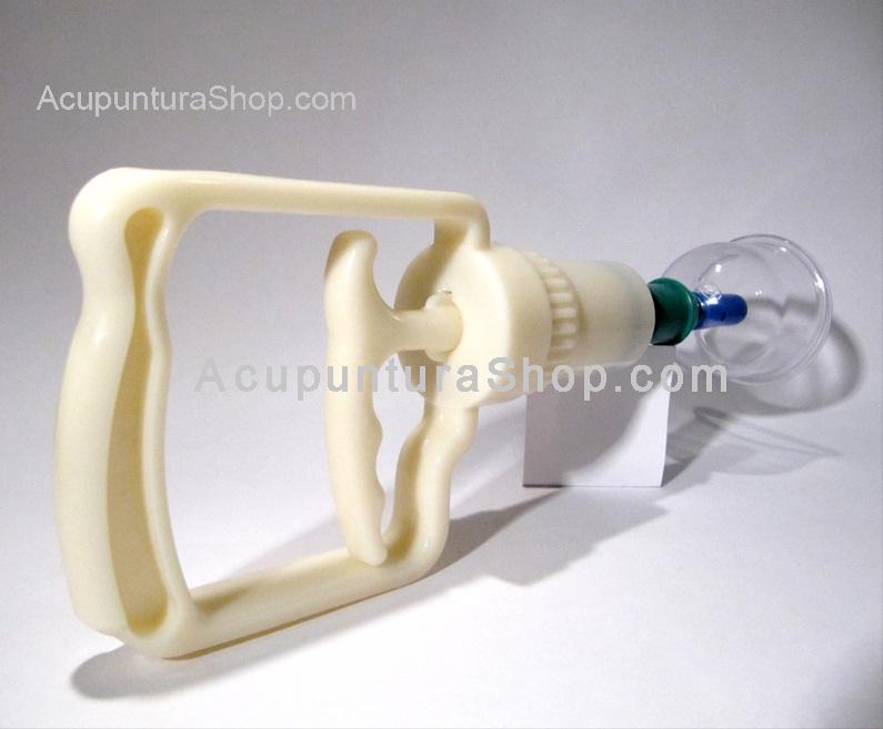 Cada ventosa neumática contiene en la parte superior una válvula y bio- magnetos incluidos (con polaridad norte y sur ó + y - ), se coloca la ventosa sobre la piel del paciente y con la bomba se empieza a producir el vacío hasta donde el terapeuta considere suficiente. La ventaja de este tipo de ventosas, es que se puede regular el vacío, lo cual no se puede hacer con las ventosas tradicionales (vidrio).