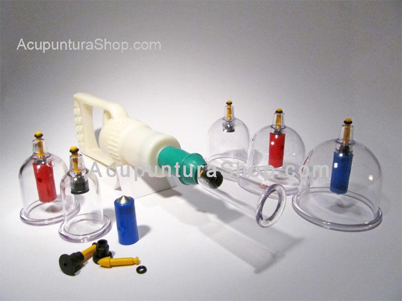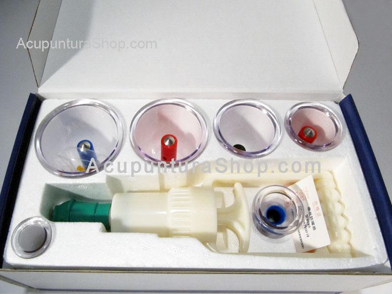 Cada ventosa neumática contiene en la parte superior una válvula y bio- magnetos incluidos (con polaridad norte y sur ó + y - ), se coloca la ventosa sobre la piel del paciente y con la bomba se empieza a producir el vacío hasta donde el terapeuta considere suficiente. La ventaja de este tipo de ventosas, es que se puede regular el vacío, lo cual no se puede hacer con las ventosas tradicionales (vidrio).